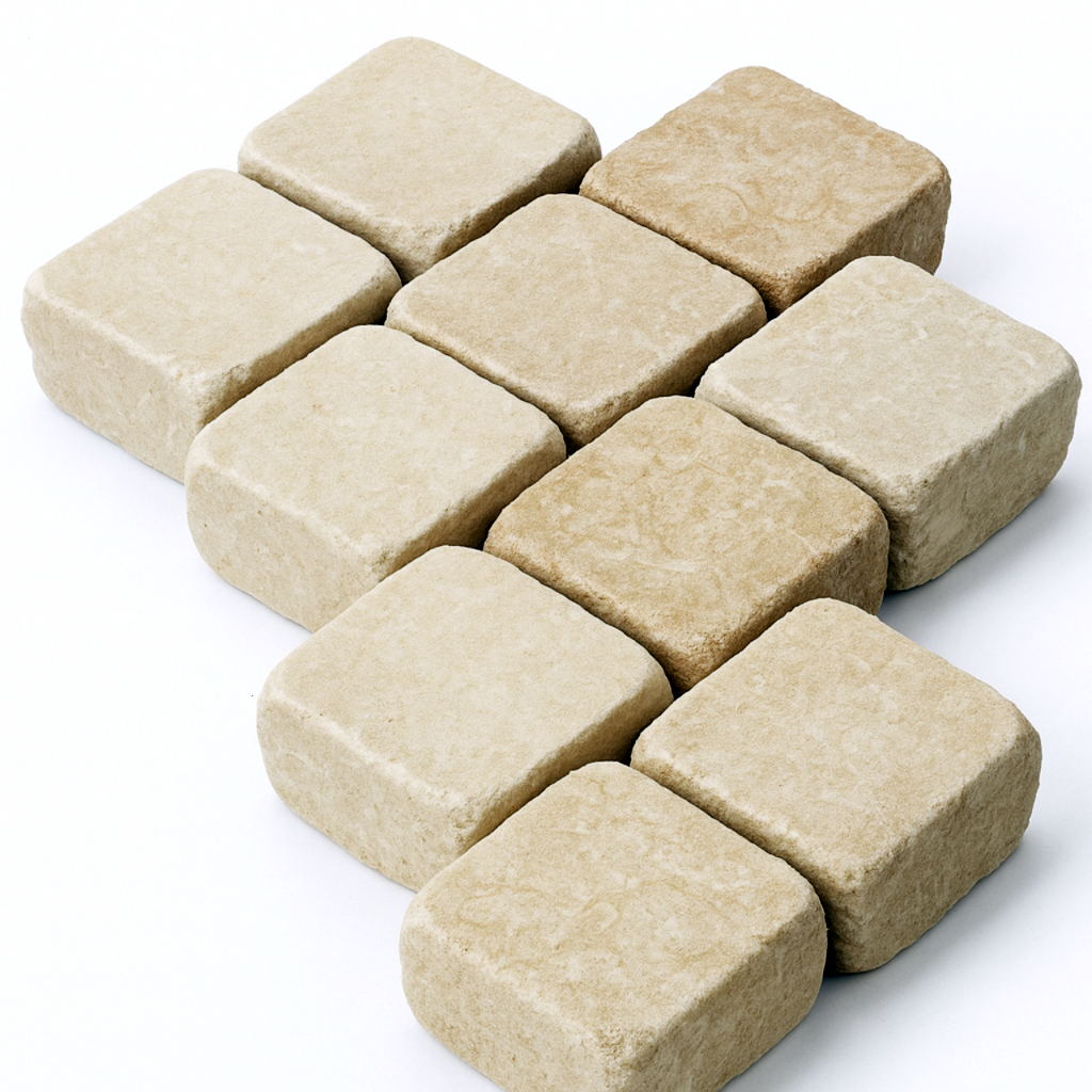 Pflastersteine aus Kalkstein Seashell Light eignen sich ideal für Gartenwege, Einfahrten und Terrassenflächen. Die sandgestrahlte oder angeraute Oberseite sorgt für Trittsicherheit, während die präzise gesägten und spaltrauen Seiten ein gleichmäßiges und harmonisches Verlegebild ermöglichen. Dank ihrer hohen Belastbarkeit und Witterungsbeständigkeit sind sie optimal für dauerhaft schöne Außenflächen mit heller, freundlicher und mediterraner Ausstrahlung geeignet.