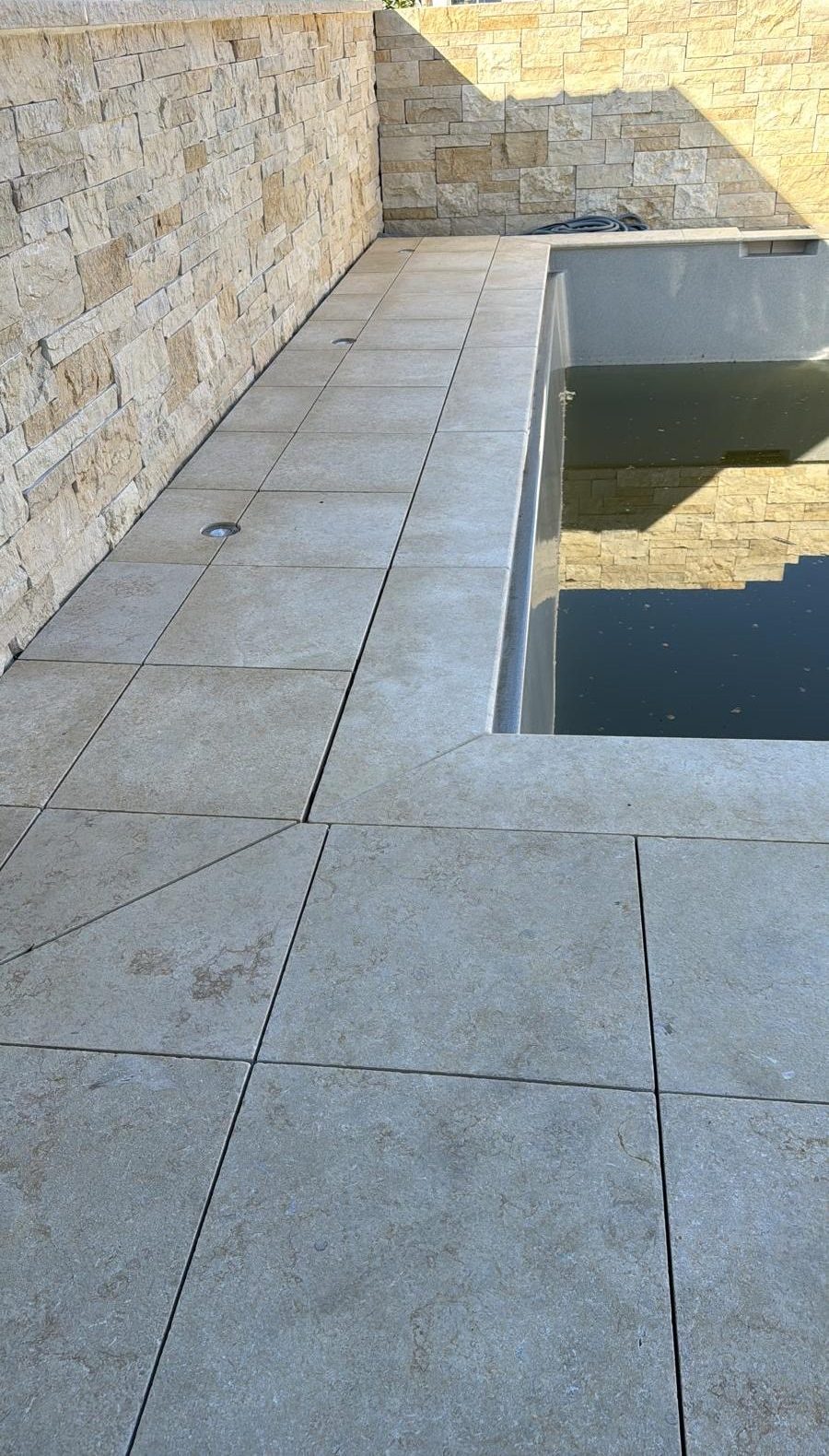 Poolecken aus Kalkstein Seashell Light ermöglichen eine hochwertige und harmonische Gestaltung von Poolanlagen. Durch die präzise Verarbeitung und die rutschhemmenden Oberflächen wie sandgestrahlt oder angeraut bieten sie Sicherheit und Komfort im Poolbereich. Die gerundete Innenkante sorgt für eine elegante, helle Optik und einen angenehmen Übergang, während der Naturstein dank seiner hohen Witterungsbeständigkeit auch langfristig überzeugt.